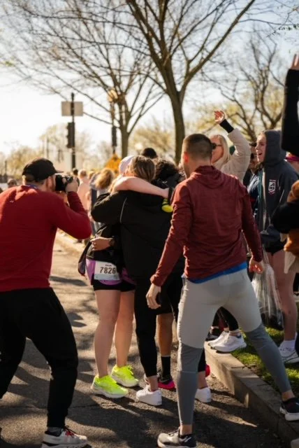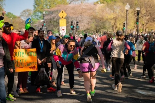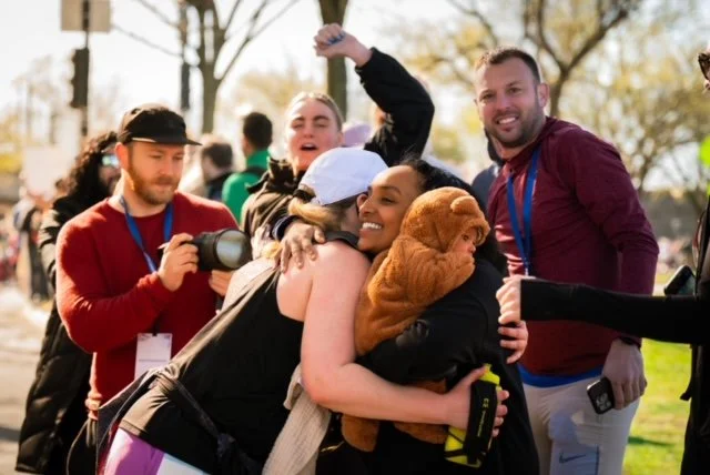 Then came the scream tunnel - where almost every run club in DC was perched just after mile 9 and the final turn toward the finish line. You could hear the noise bouncing off of the buildings in the Wharf District while coming down the final stretch of Hains point. This was it. Passing through DRC’s dance party is always fun. But next in line were my people, my athletes, my friends of Northeast Track Club. Earlier in the week I had joked that I was going to sneak behind the crowd around NETC because I was not sure I was ready for it. But as I got closer and saw the looks on their faces of how ecstatic they were to see me - I had to take it all in. It was arms outstretched, fully embraced hugs for everyone and high fives all around. And I could not have asked for a better celebration. To truly be celebrated by your people is amazing. The roles are usually reversed and I am the one losing my voice screaming for my athletes during the race. My life and career has always been about other people and their running goals and how I can make sure they get there. But today - in that moment - I was being celebrated. And damn it felt amazing!