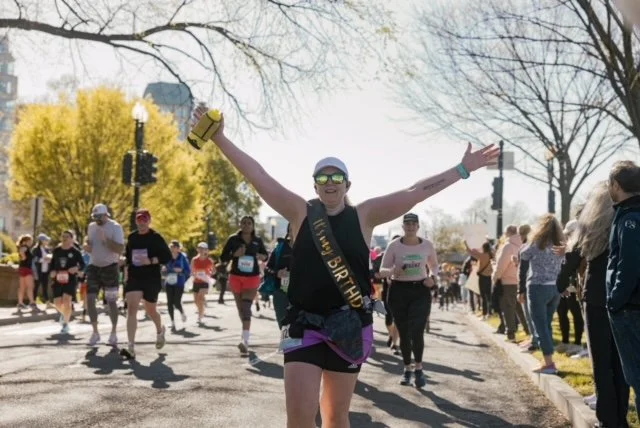 The weather was damn near perfect Sunday morning. I clearly over dressed and had to stop to tie my jacket around my waist (rookie move). I was cruising through the miles no problem. Oddly at ease with the herd. Got to mile 5.5 - first glance at NETC’s cheer zone. And who do I spy? Sarah Truitt - camera in hand jumping up and down yelling for me. It was a confidence boost I needed entering Hains Point. I had not run on Hains Point in forever, but somehow it has not changed. Not that I was expecting it to, but it felt like I never left. Once I crested the turn at Hains and spotted the familiar “Oreos and Beer stop”- all the emotions started to hit. Holy shit - I’m doing this. Yes I am running and walking, but I’M DOING IT! Never once did I glance at my watch, berate myself for going slow, or have doubt. I was unusually calm and my mind was settled. It was like this was the missing piece of me lost 2 years ago. That void in my life was slowly filling in with the passing of each mile.